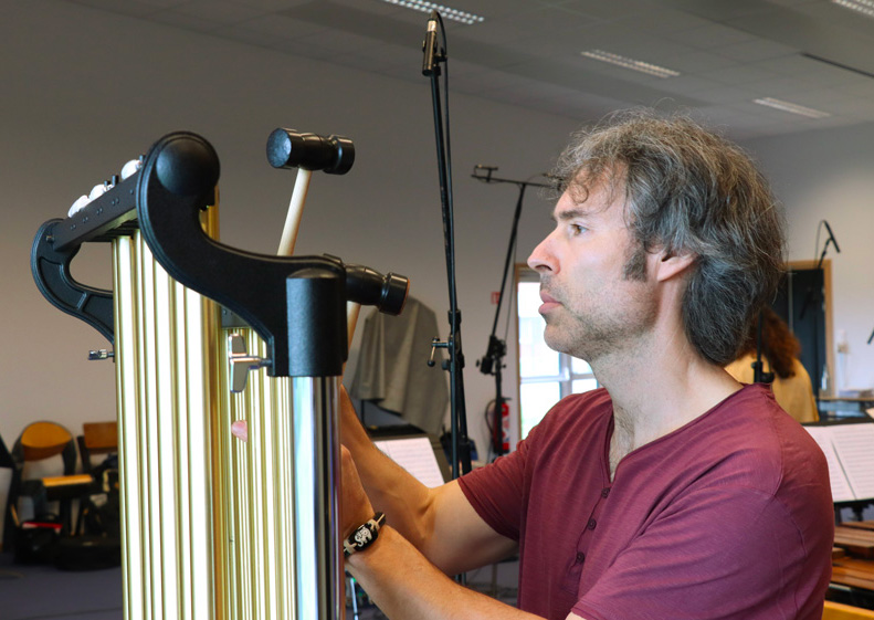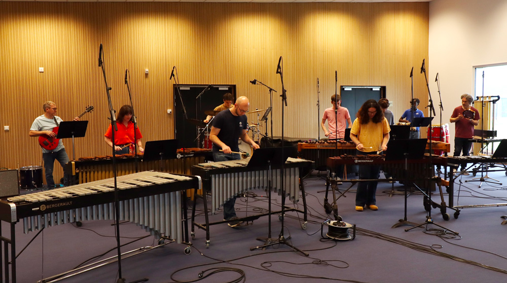 Scéniquement, l’ensemble est très impressionnant car il nécessite beaucoup de matériel, que ce soient des percussions classiques (xylophones, glockenspiels, vibraphones, marimbas, cloches tubulaires, timbales…) ou traditionnelles (latines, orientales…).